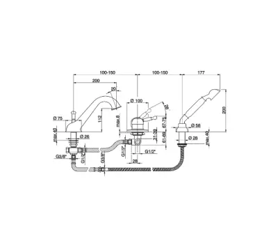 Deck mounted 3-hole single lever bath mixer