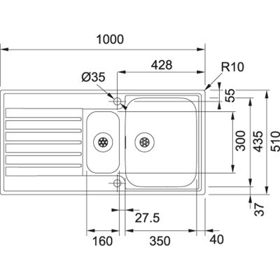 Franke Argos AGX 251 1.5 one and a half stainless steel sink with drainer flush mount 1000x510 127.0380.391