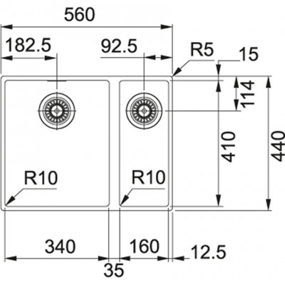 Franke Sirius 2 S2D 160 one and a half 1.5 plastic white sink 53.5x41cm undermount 125.0252.219