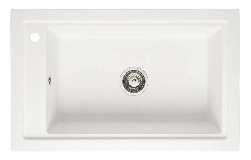 Graniteland Magra Granito Blanco Fregadero empotrado 686 x 427 mm con orificio para grifo y tapón de acero inoxidable 1208970614