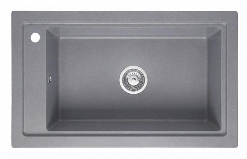 Graniteland Magra Granito Gris Fregadero sobre encimera 686 x 427 mm con banco de agujeros para grifo y tapón de acero inoxidable 1208970618