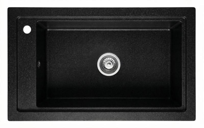 Graniteland Magra Granito negro arduina piedra dura Fregadero de encimera 686x427 mm con orificio para grifo y tapón de acero inoxidable 1208970615