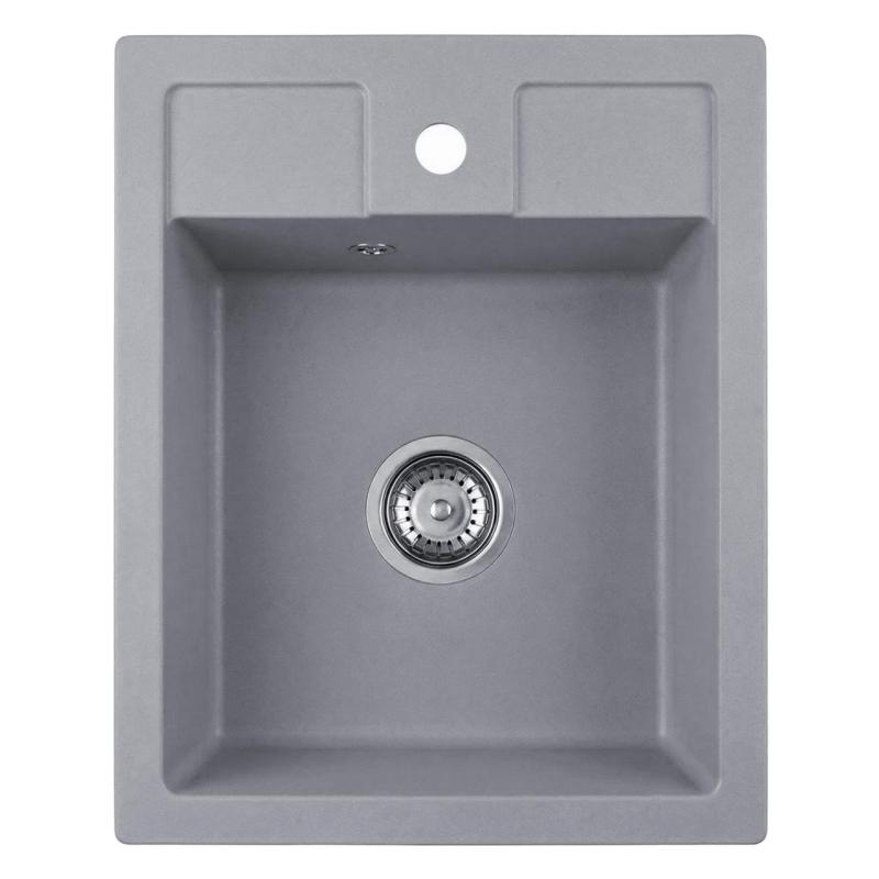Graniteland Prest Fregadero gris de granito Tapwing con orificio para grifo de montaje en superficie 400x500mm con tapón de acero inoxidable 1208971425