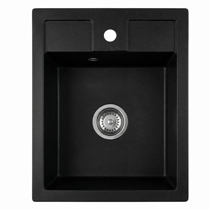 Graniteland Prest Fregadero de granito negro Tapwing con orificio para grifo de montaje en superficie 400x500mm con tapón de acero inoxidable 1208971421