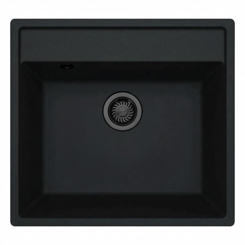 GraniteMy Bremen Granite Sink 53x50 cm Black - Surface Mount, Undermount and Flush Mount with Faucet Hole and Gun Metal Plug 1208969971