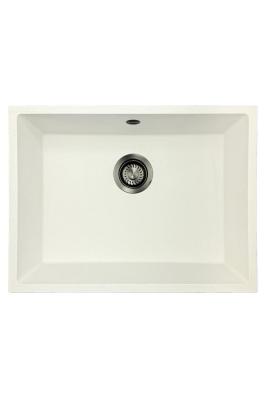GraniteMy Universal Granite White Sink 55x40 cm overmount, undermount, and flushmount with gun metal plug - 1208967933