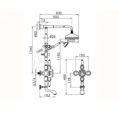 Standing at a height of 1340mm, this shower set will make a bold statement in your bathroom. The Victorian series design adds a classic and vintage touch, enhancing the overall aesthetic of your space.