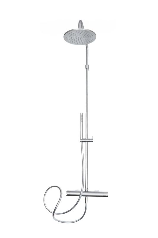 La combinación de ducha con termostato y ducha de lluvia cromada M1.B11TH.CR deMURO TUA ofrece el máximo confort en la ducha, seguridad y un diseño lujoso. Este completo set de ducha es ideal para quienes desean disfrutar a diario de una temperatura constante y de una auténtica experiencia de bienestar en el cuarto de baño.