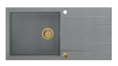 Quadri Luton grey granite Inset Kitchen Sink with draining board reversible 100x50cm with golden plug 1208967325