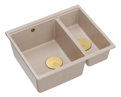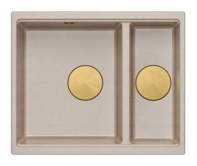 Quadri Newport II beige 1.5 bowl granite topmount and undermount sink 555x460mm with gold plug 1208971768