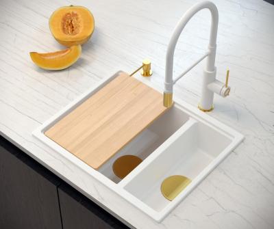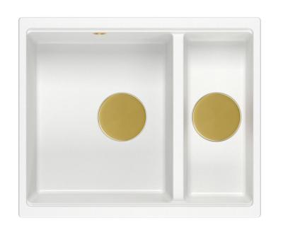 Quadri Newport II granite white inset and undermount sink 1,5-bowl 555x460mm with golden manual siphon 1208967462