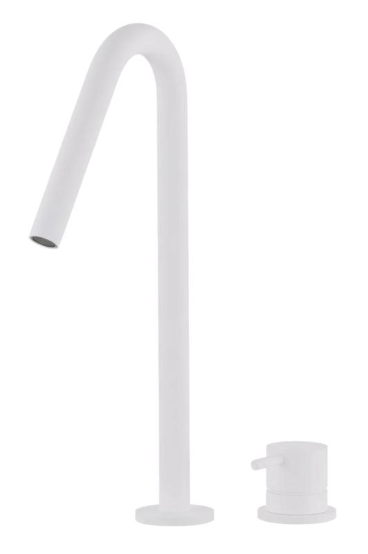 The Waterevolution Flow 2-hole sink faucet in white with a high V-Shaped 227mm spout is the perfect addition to any bathroom or kitchen. With its sleek design and modern appearance, this faucet is sure to impress.