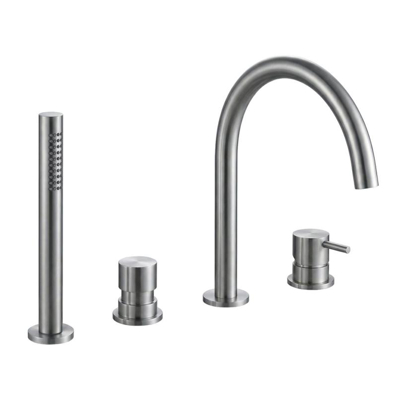 The Water Revolution Flow 4-hole Bath Faucet for Bath Rim Mounting, fully stainless steel T138IE, is a beautiful addition to your bathroom. With its sleek and modern design, this bath faucet will be a real eye-catcher in your bathroom.